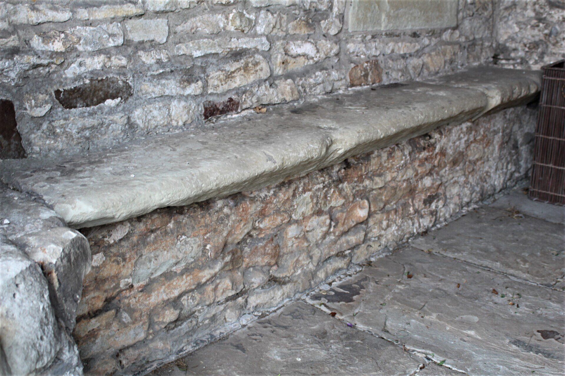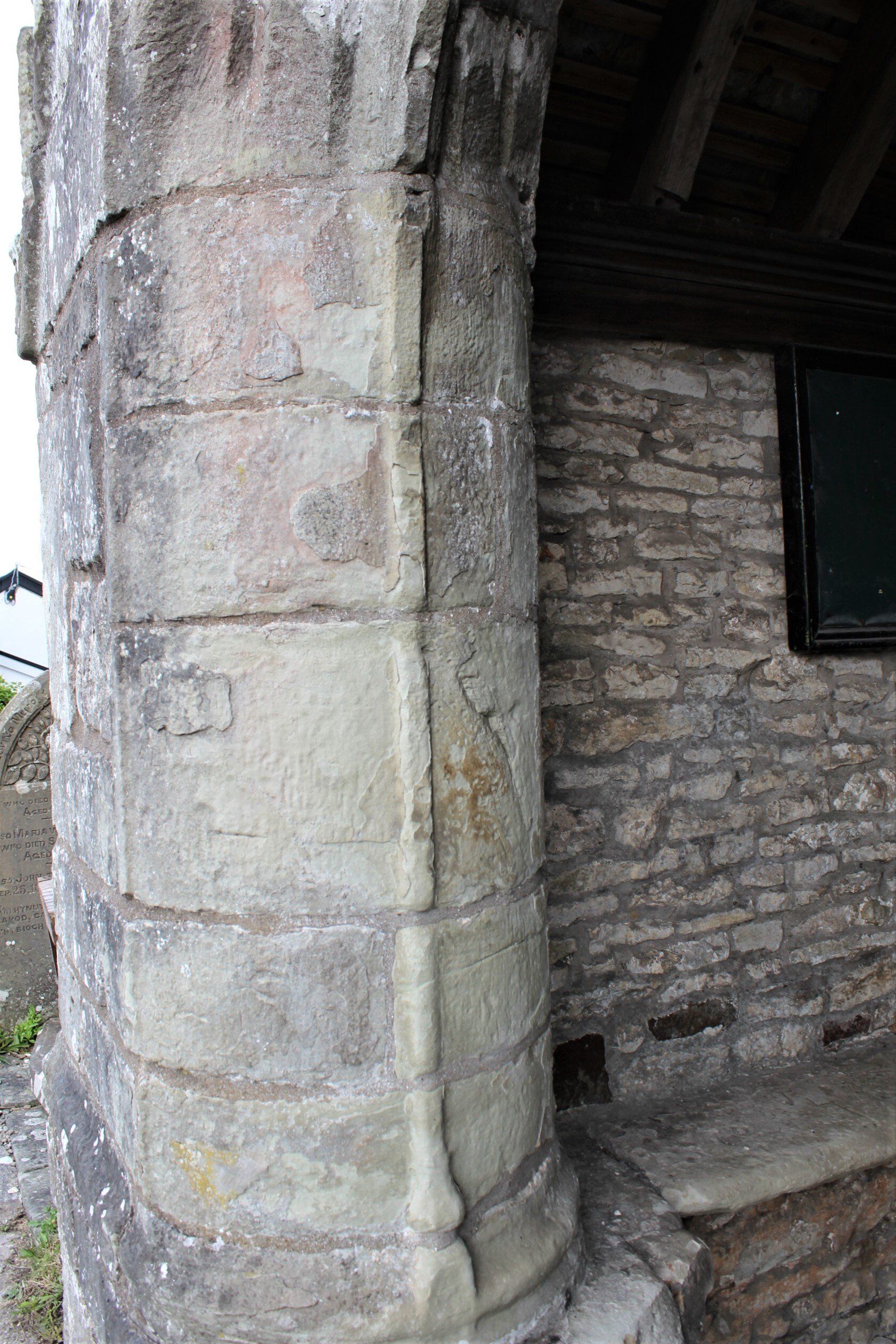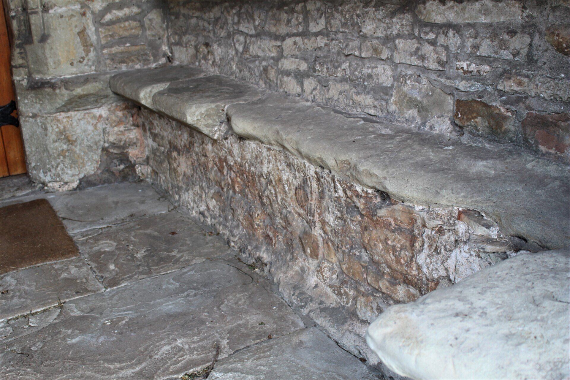 The Porch is not as old as the rest of the building probably 14th or 15th century. Porches were added to Churches to protect the clergy and others from the weather as they gathered outside the doors to the Church. Often the vicar was the only one in the community who could read and write. The legal title of a priest is "Clerk in Holy Orders". So it was here that people met to have their letters written for them or to have them read . Here also disputes would be settled and other non-ecclesiastical matters dealt with. Laleston St Davids Church still has it's original stone benches which can be seen in the gallery above along with a picture of the 'Stoop' which is to the right of the doorway.