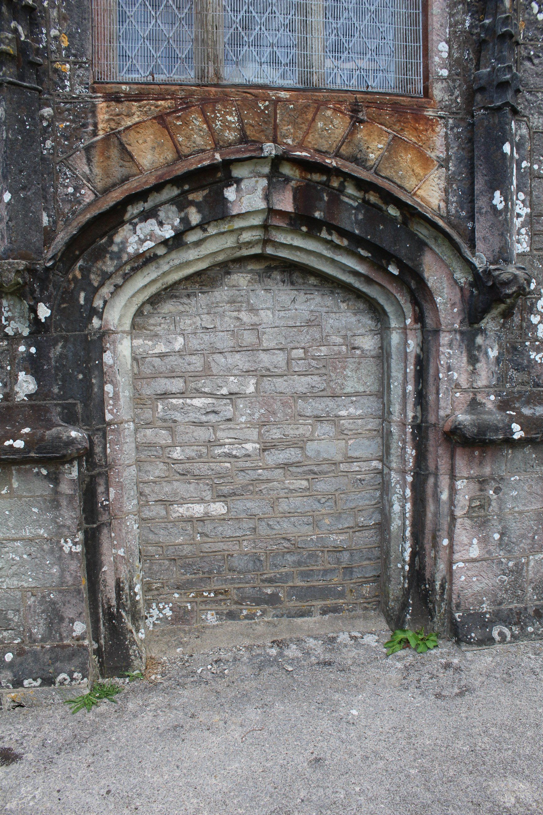 During the 14th to 15th century there was a large scale rebuild of Laleston Church. Much stonework now visible was obviously taken from an earlier site. Maybe Llangewydd was pulled down and the stone re-used, it seems that this was the case as little else would account for the peculiar mixture of stones in the present Church, A close inspection of the tower will show that the lower half at least has been rebuilt in different stone, perhaps the old porch was here at the time. The rose carvings on the windows of the tower and the south niche of the nave are also suggestive of this period.